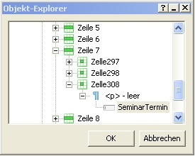 ... Ich habe hier dem Eingabefeld auch den Namen und die ID “SeminarTermin” gegeben, um es im “Objekt-Explorer” einfacher finden zu können. Hier befindet es sich in Zeile 7 meiner Formular-Tabelle. |
