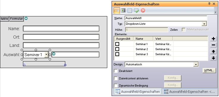 ... wollt Ihr das “Eingabefeld” zur Anzeige des Wertes aus dem “Auswahlfeld” auch noch nicht editierbar machen, dann könnt Ihr noch das Feld im Objekt-Editor auf “readonly” (nur lesen) setzen.