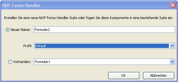 Wenn Ihr mehr als einen Formular-Handler im gleichen Projekt verwenden wollt, dann müsst Ihr lediglich bei der Erstellung dieser Komponente unterschiedliche “Suite-Namen” vergeben, damit die XML-Dateien auch unterschiedlich von NOF generiert werden.