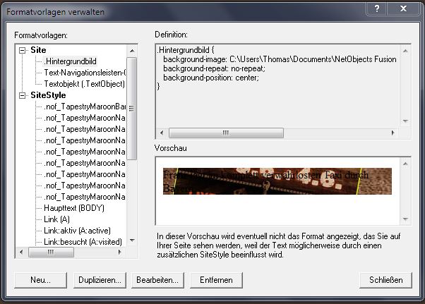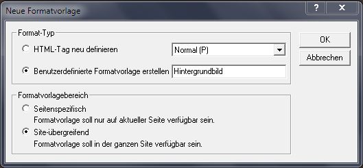 ... und weist diesem neuen “Layout-Bereich” eine Formatvorlage zu (CSS-Class). Dazu gehst Du oben im Menü: