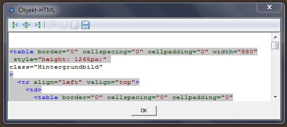 Anschließend klickst Du auf Deinen “Layout-Bereich” > Fenster “Layout Bereich-Eigenschaften” > Buttom “HTML”