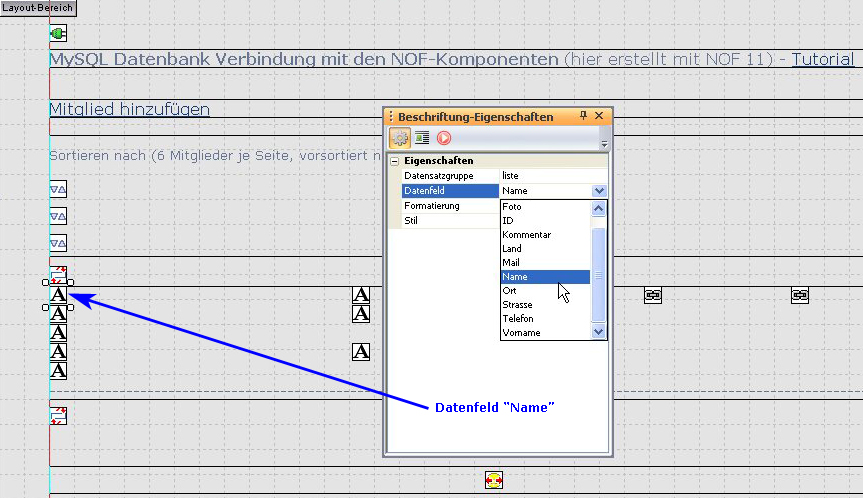 Das Objekt “Beschriftung” wird die einzelnen Felder Eurer Datenbank darstellen. Ich habe mir hierfür eine Tabelle aufgezogen und die Felder entsprechend in dieser positioniert.