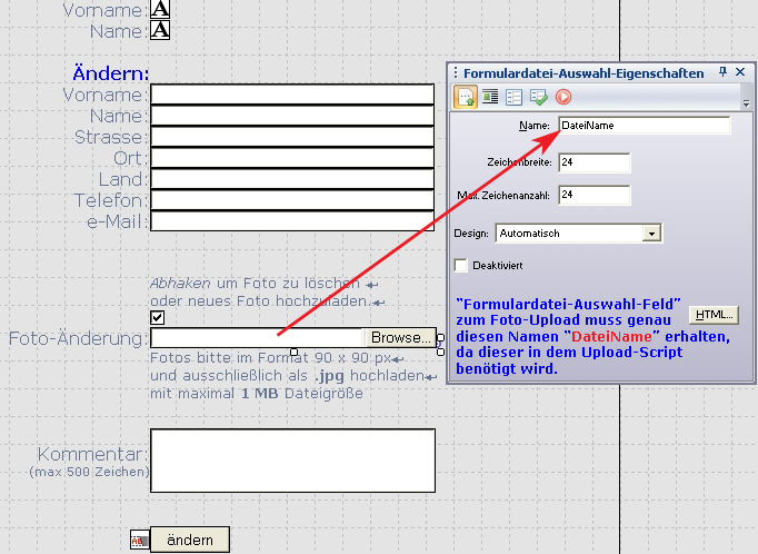 Daher war Klaus2 so nett und hat mir ein tolles Script hierfür geschrieben, das den Upload ausschließlich für das Bild-Format JPG zulässt, welches dann auch überprüft wird und nochmals mittels .htaccess gegen Manipulationen geschützt ist. Weiter unten beschreibe ich das noch genauer.