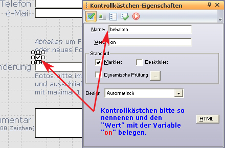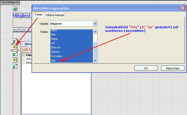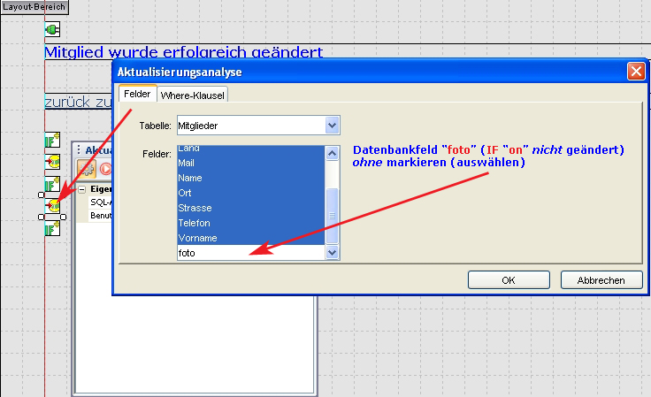 Ihr könnt dieses Datenbank-Feld ja z.B. "foto" nennen (so wie ich hier). Gebt diesem Feld eine ausreichende Länge, damit längere URL's auch rein passen (ich habe hier 100 Zeichen gewählt).