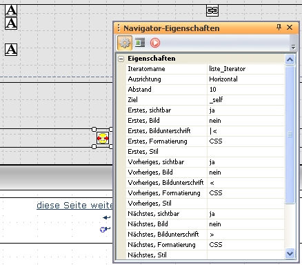 Um durch die Datenbank zu Navigieren gibt es das Objekt “Navigator”. Bei mir werden z.B. je Seite 6 Datensätze angezeigt. Mit dem Navigator “blättert” man durch die Seiten. Die Einstellungen sind selbsterklärend (siehe Bild unten).