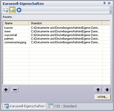 Nun tragt Ihr lediglich die zu verwendenden Bilder in das Eigenschaften-Fenter ein und fertig.