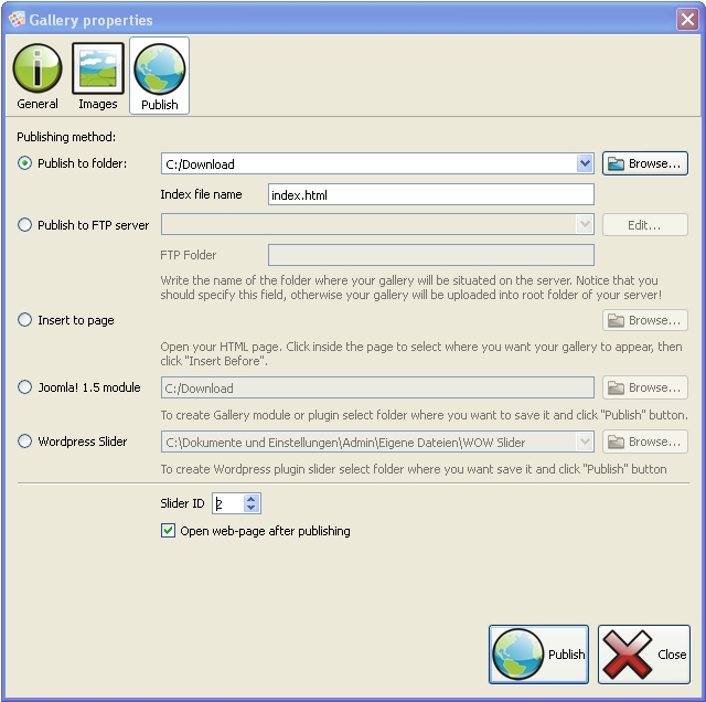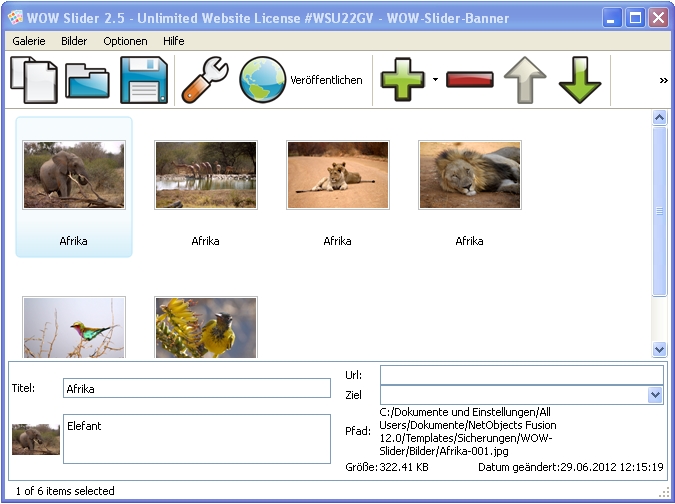 Nachdem Ihr Euren “WOW Slider” fertig erstellt und lokal mit dem Programm publiziert habt, öffnet Ihr die vom Programm erstellte Datei index.html mit Eurem Windows Editor und kopiert den mit