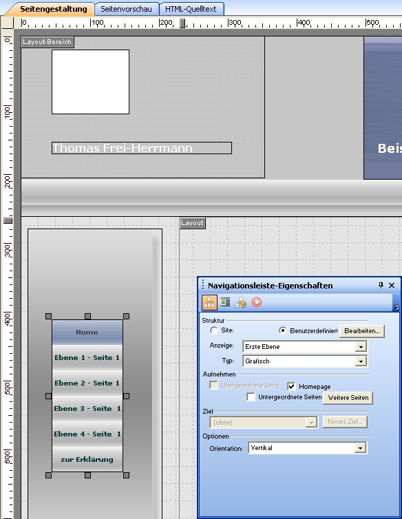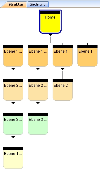 > Habe ich jetzt im linken Fenster “Ebene 1 - Seite 1” markiert und im rechten Fenster “Home”, wird diese Seite unter der Seite “Home” platziert.