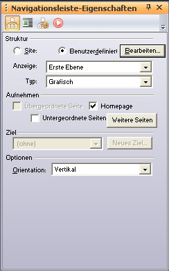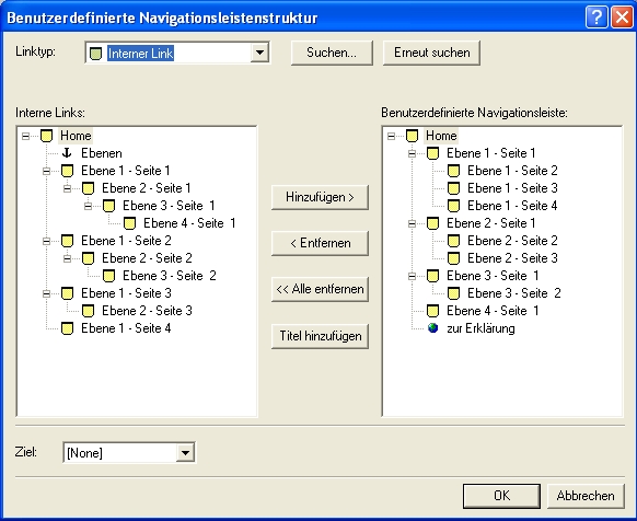 Ihr “schiebt” nun mittels Button “Hinzufügen” die jeweils im linken Fenster markierte Seite in das rechte Fenster für die Navi.