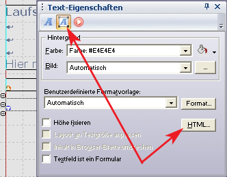 ... einfach ein Textfeld aufziehen > im Fenster "Text-Eigenschaften" auf den mittleren Button oben ("Textfeld") klicken und dort auf den Button "HTML" > dort dann den Java-Script-Code in den HTML-Code-Editor einfügen und auf OK klicken.