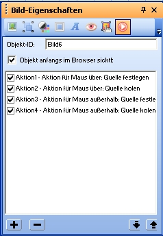 nun klickst Du erneut auf das “+” Zeichen um die 3. Aktion zu bestimmen und nimmst folgende Schritte vor:> Anlass = > Maus > Maus außerhalb wählen > Meldung = > Mermal festlegen > Quelle festlegen> Parameter = Werte > Dein erstes Bild (hier unsere Katze auf dem Tisch) aussuchen> OK bestätigen