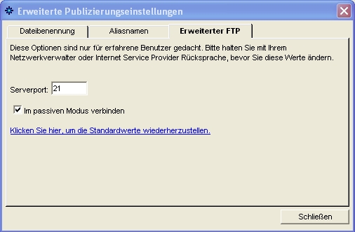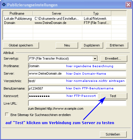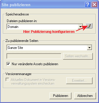 Wenn Ihr noch keine “entfernte” Publizierung eingestellt habt, müsst Ihr das jetzt tun. Dazu klickt Ihr auf den kleinen Bleistift in diesem Fenster.