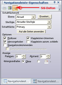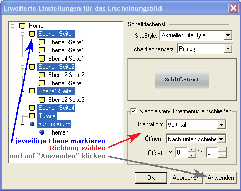Fotos der Einstellungen der horizontalen Navidiese Navi klappt nach “Ebenen” aus.Bitte guckt Euch einfach diese Fotos genau an um die Einstellungen, die ich für diese Navi hier auf dieser Seite vorgenommen habe zu sehen.Wie man eine Benutzerdefinierte Navi erstellt (im Bild das rechte Fenster) habe ich in meinen Erklärungen beschrieben.