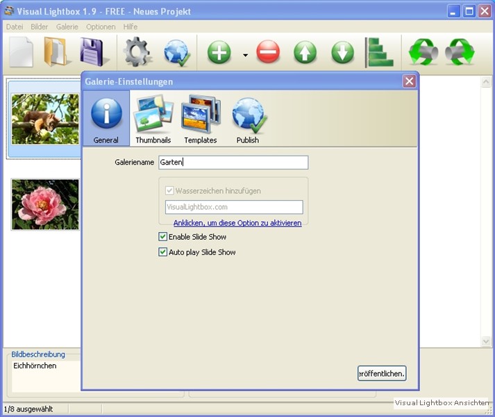Nachdem Ihr Euch “Visual Lightbox” heruntergeladen habt, erstellt Ihr Euch eine Galerie.